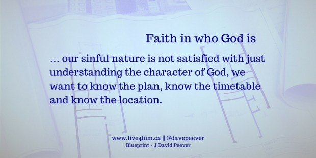 Our sinfulness has separated us from God so that we are not satisfied with knowing the character of God and trusting that He has a perfect plan, we want to know the plan in its entirety before we will trust Him fully.