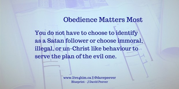 We are called to live out God’s plan, done God’s way, in God’s timing, with God’s chosen resources, anything else pulls us away from relying on God’s perfection which is the plan of the evil one.