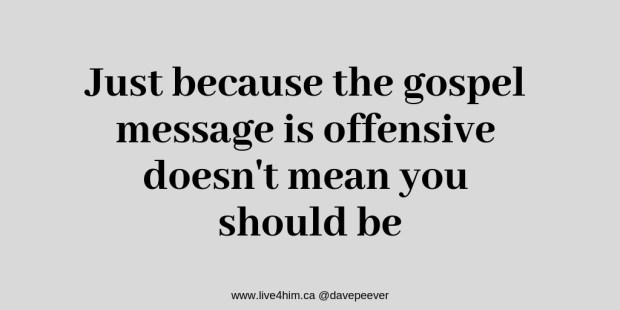 Don’t confuse people taking offense because of the gospel message with people being offended because of the gospel messenger.